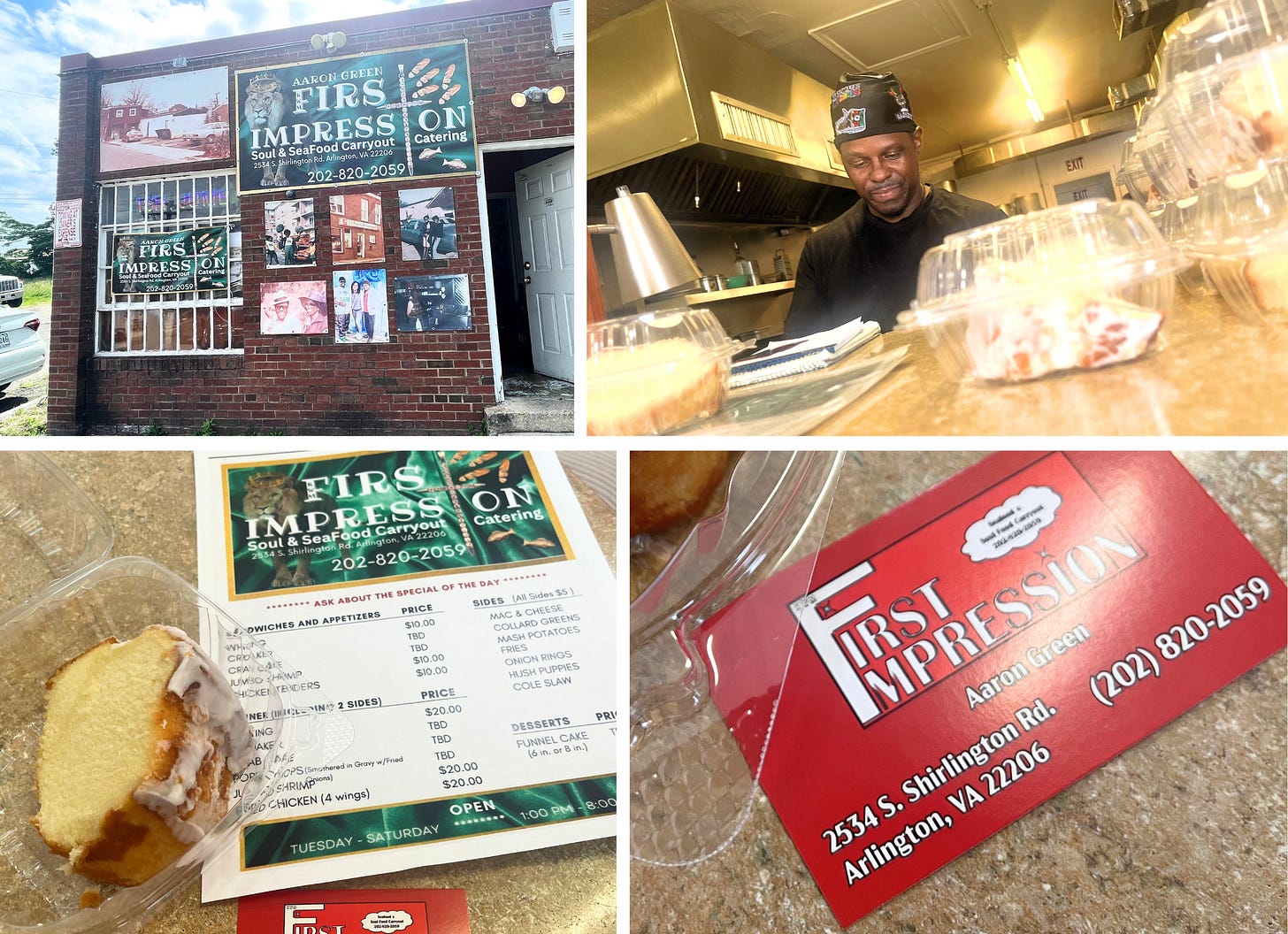 The highly recommended First Impression Soul & Seafood in Arlington is a must visit location in Northern Virginia. Aaron Green’s family run business is located at 2534 S. Shirlington Road in Arlington.