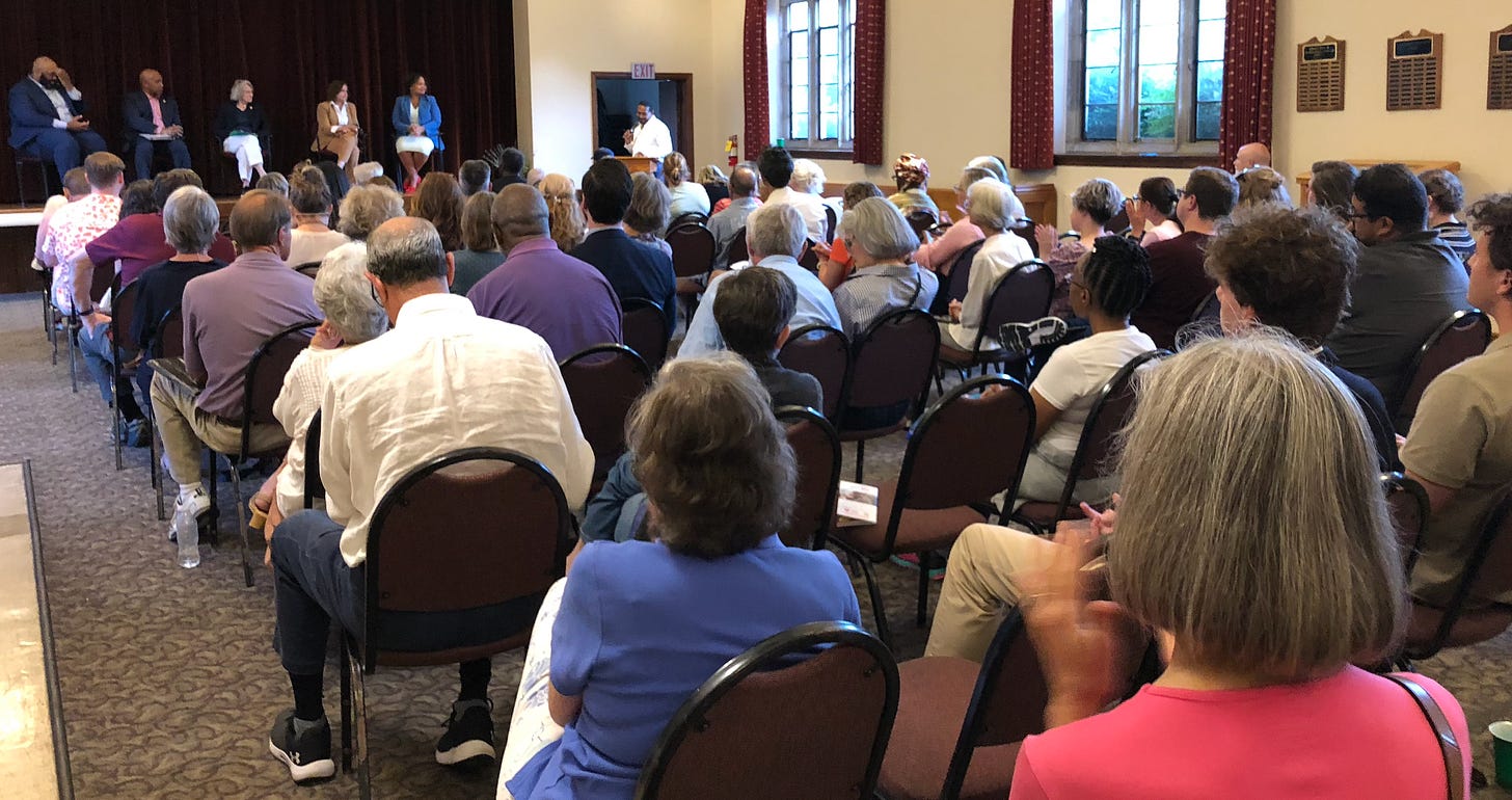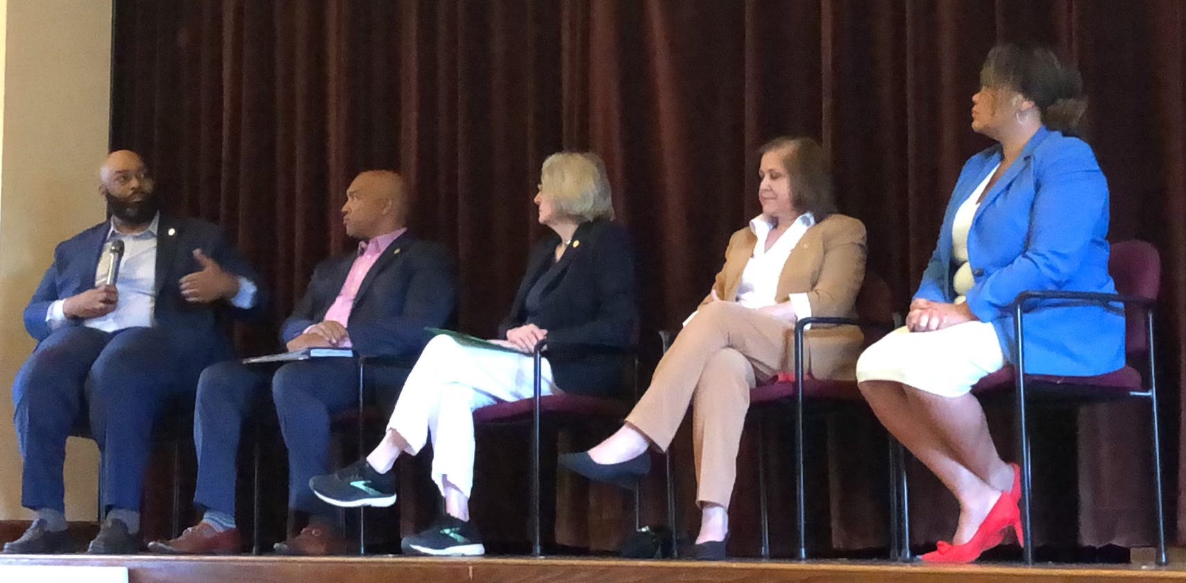 Last night in Richmond five members of the Virginia General Assembly took questions for over an hour from constituents. From left to right, Virginia Legislative Black Caucus Chair Senator Lamont Bagby, Del. Mike Jones, Del. Betsy Carr, Senator Ghazala Hashmi and Del. are Cousins. The town hall tool place at Forest Hill Presbyterian Church.
